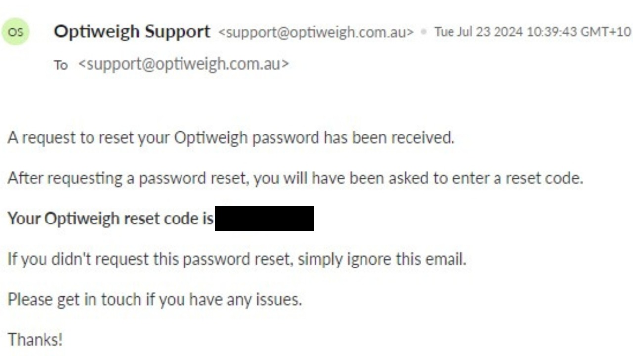 If you have any trouble resetting your login please call the Optiweigh Support team on 1300 678 493